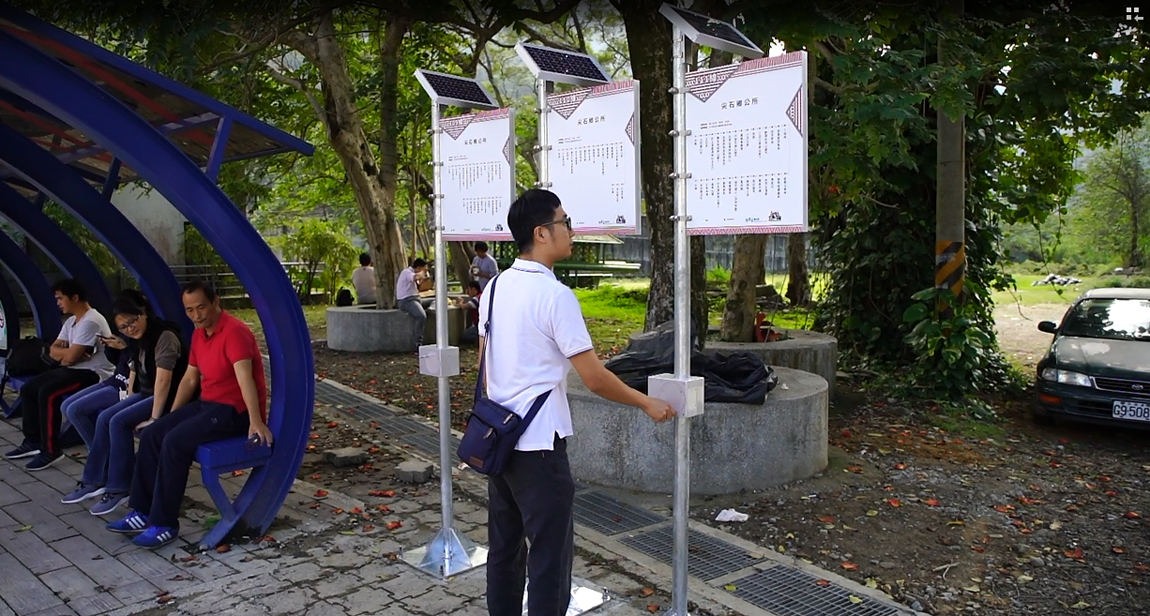 以「手搖智慧站牌」來說,在電力配置不方便的地方,採用 Hybrid Mass LINK 技術,整合 NB-IoT 與 LoRa 兩種通訊技術,設置手搖發電的智慧站牌,藉由手搖發電模式讓偏鄉也能即時追蹤公車動態資訊,避免錯過班次。目前已在新北市關渡、新竹縣尖石鄉與基隆七堵區瑪陵坑苓蘭生態農園試辦啟用,此技術也榮獲全球百大科技研發獎(R&D 100 Awards)的肯定。