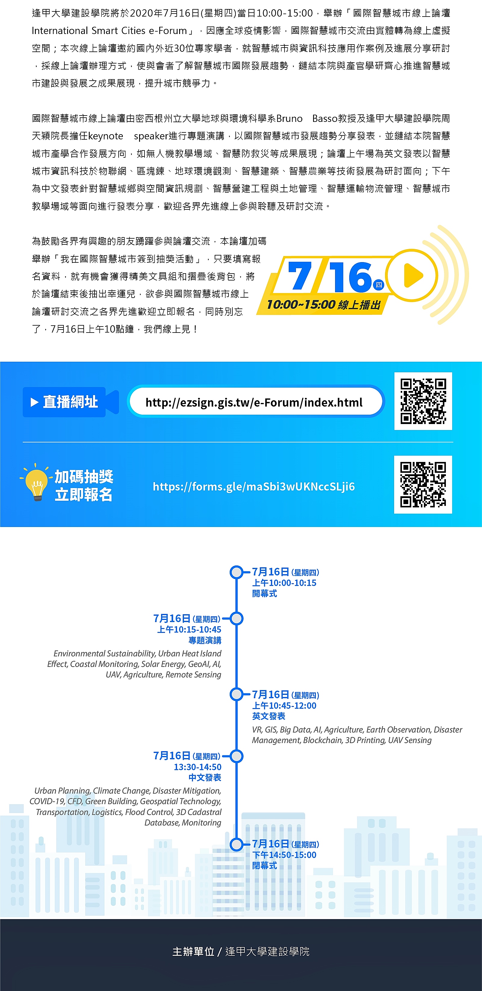 「2020國際智慧城市線上論壇」歡迎線上參與聆聽及研討交流