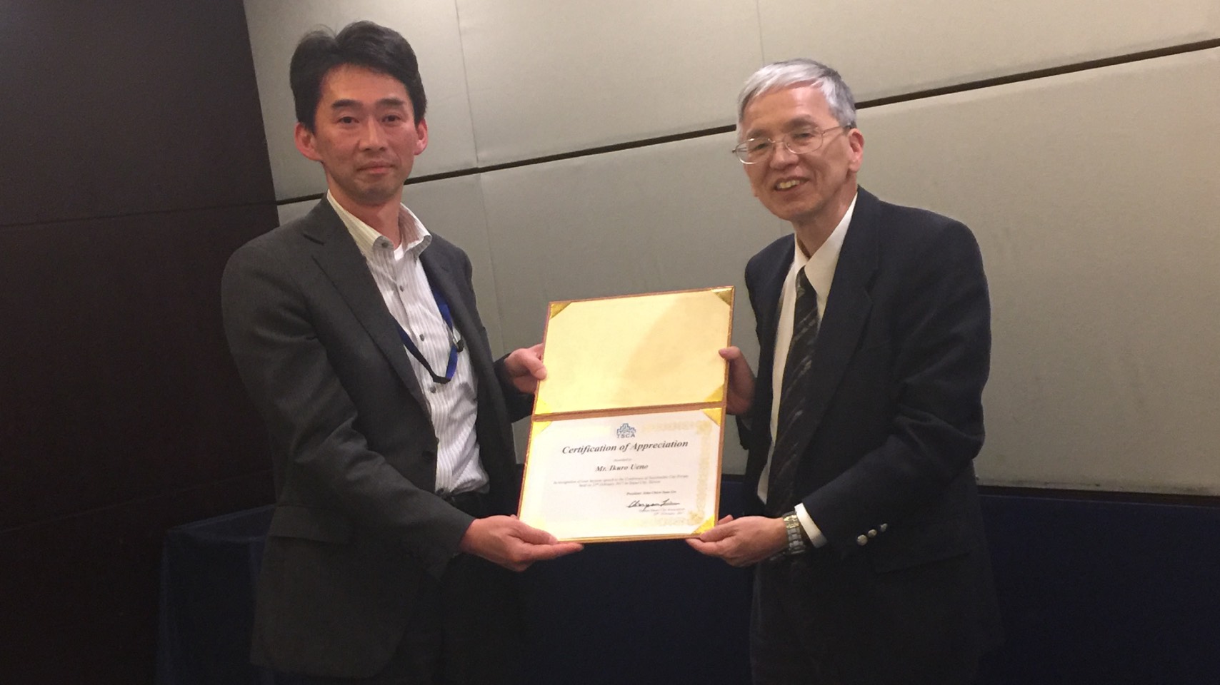 本會理事長林建元頒發感謝狀,感謝MITSUBISHI ELECTRIC的Ueno Ikuro經理