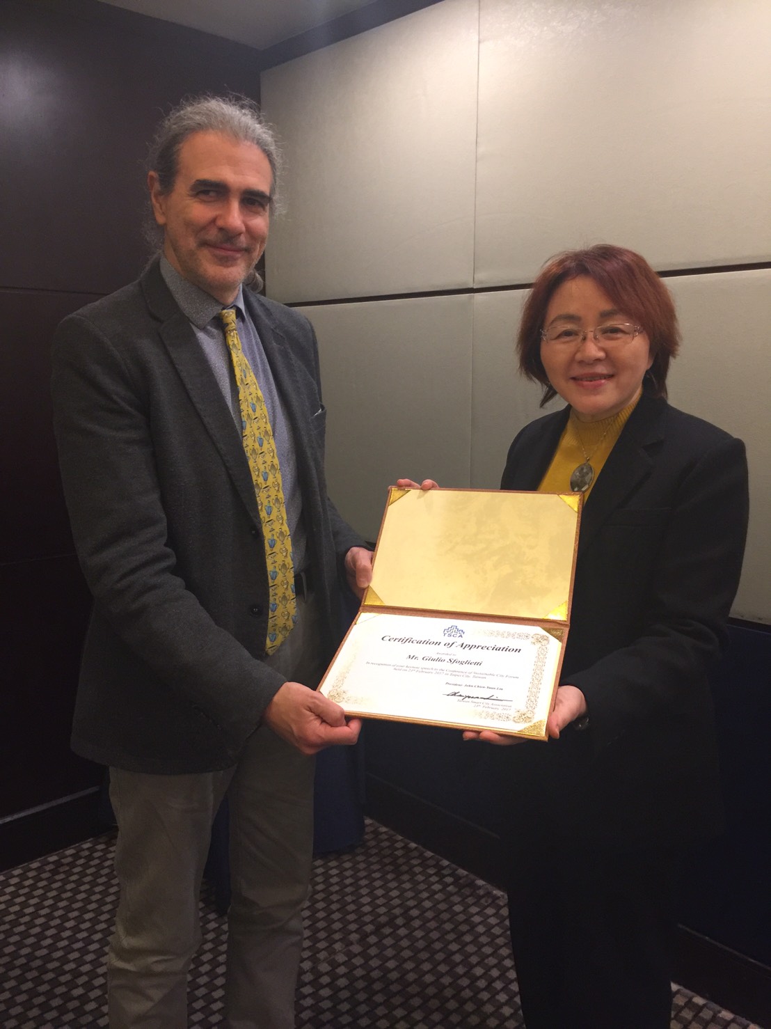 本會監事高新明頒發感謝狀,感謝MICROLAB Progetti的 Giulio Sfoglietti經理